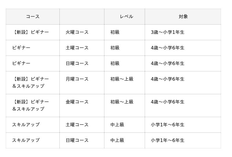 ・ビギナー火曜コースに、3歳〜小学1年生の対象コースを新設