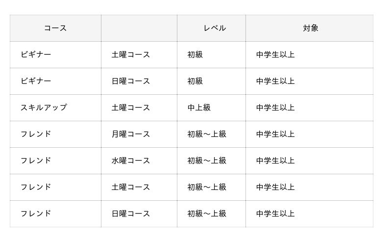 ・ビギナー&スキルアップ月曜・金曜の2コースを新設
