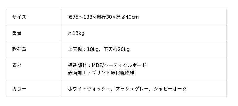 カラーはシャビーオーク、ホワイトウッド、ウォールナットの3カラー展開となっておりますのでお部屋の雰囲気に合わせて幅広くお選びいただけます。
