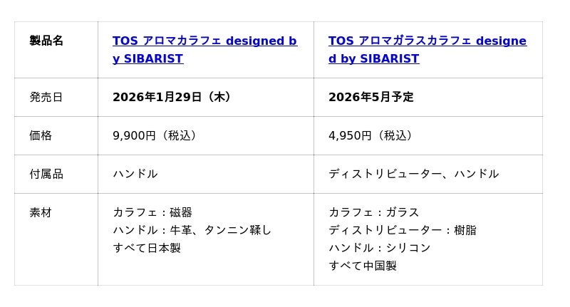 株式会社ケーアイ(東京都渋谷区/本社:岐阜県土岐市)は、2026年1月29日(木)より「TOS アロマカラフェ designed by SIBARIST」を発売します。