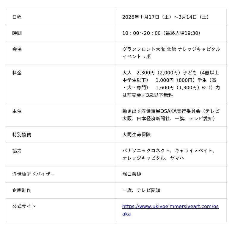 一般社団法人ナレッジキャピタル(代表理事:河口 洋一郎)ならびに株式会社KMO(代表取締役:森 秀夫)は、グランフロント大阪北館1階「CAFE Lab.」(カフェラボ)にて、「動き出す浮世絵展 OSAKA」とコラボレーションした期間限定メニューを提供することをお知らせいたします。