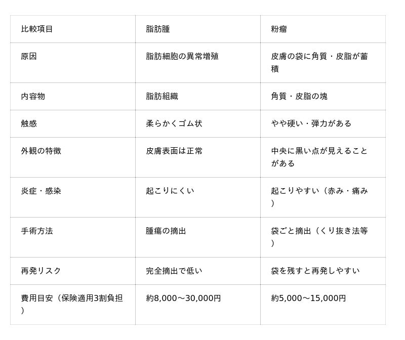 Q2. 脂肪腫と粉瘤の違いは何ですか?