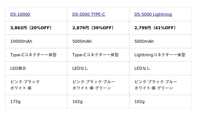 対象製品: D5-10000/D5-5000 TYPE-C/D5-5000 Lightning