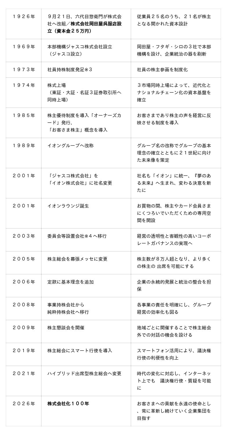 ※1:1926 年9月21日の株式会社岡田屋呉服店へ改組した日を起点としています。