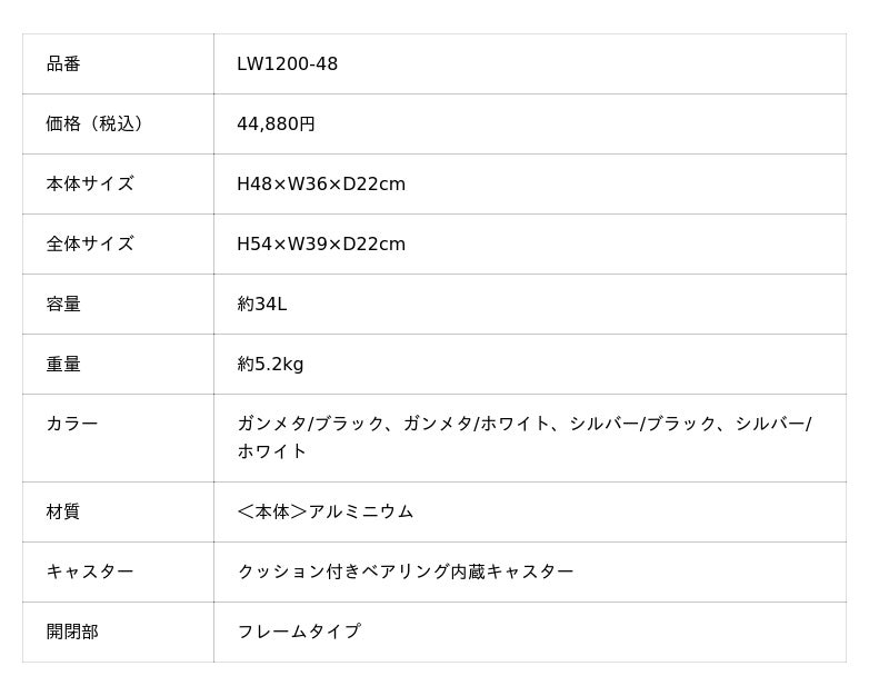製品URL:https://tands-luggage.jp/products/lw1200_hard-case