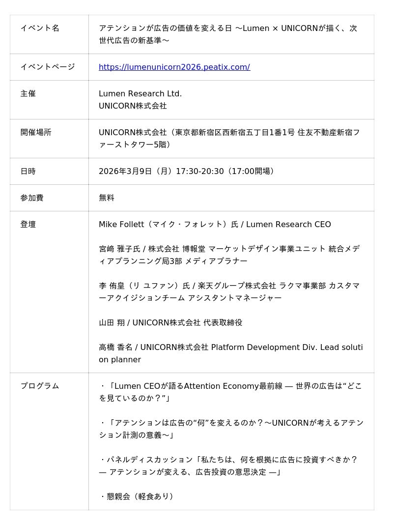 【マーケター必見】「アテンションが広告の価値を変える日〜Lumen × UNICORNが描く、次世代広告の新基準〜」をUNICORNが共催/登壇