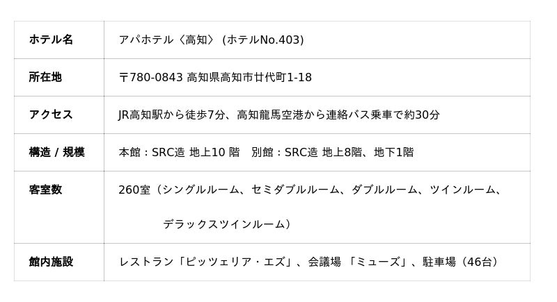 アパホテル〈高知〉公式HP:https://www.apahotel.com/hotel/chushikoku/kochi/kochi/