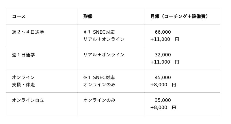 ※1 SNEC対応:系列校、明蓬館高校の特徴であるSNEC(スペシャルニーズ・エデュケーションセンター)でのサービスの意。心理相談員・支援員・教員による三位一体による支援と伴走、心理・発達検査の活用、IEP(個別教育支援計画)の運用などを指します。