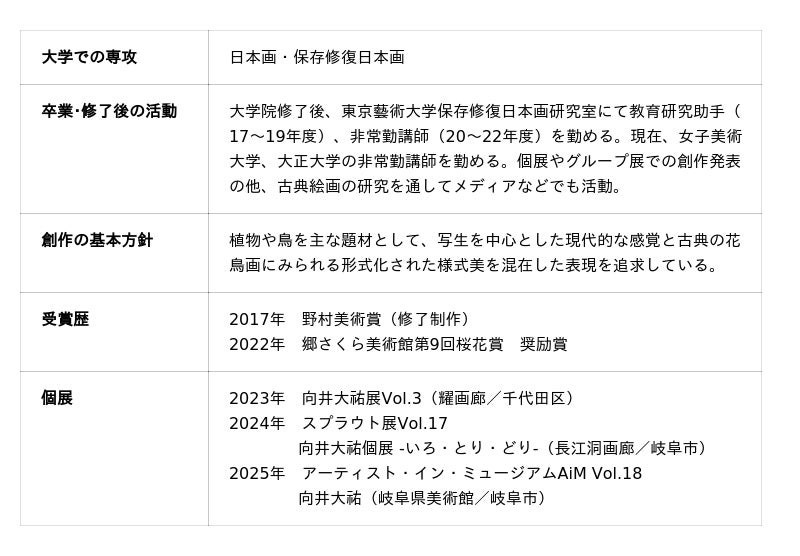 東京藝術大学美術学部絵画科日本画専攻卒業