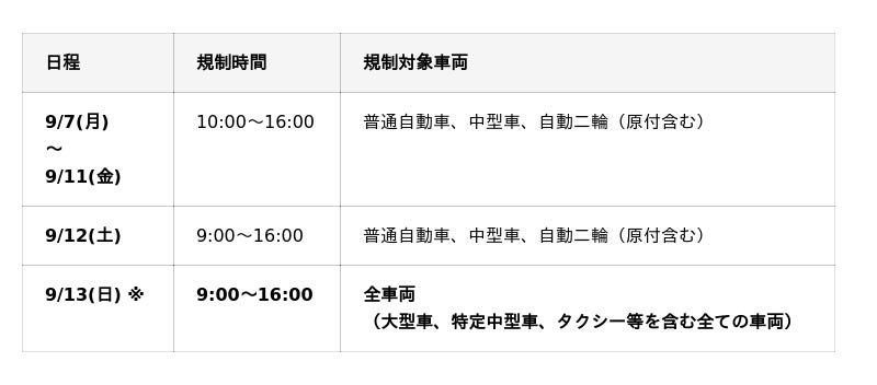 ※9月13日(日)の「完全交通規制」について