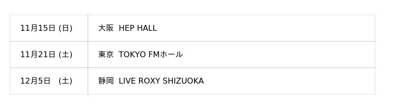 昨年に引き続き、今年もツアー開催です。会場でみなさんに会えることを楽しみにしています!