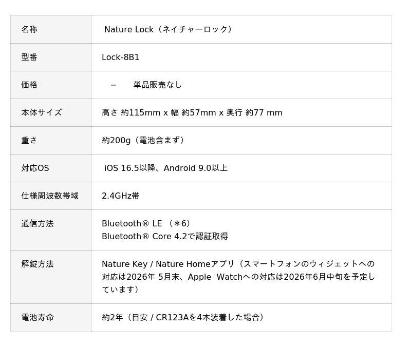 (*5)当社調べ(2026年4月時点、市場の主要スマートロック製品の公表スペック値との比較による目安)