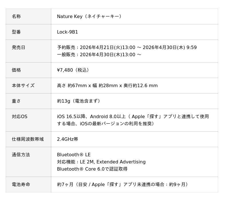 「自然との共生をドライブする」をミッションに掲げるNature株式会社(所在地:神奈川県横浜市、代表取締役:塩出 晴海、以下「Nature」)は、ホームオートメーション領域の新たな製品として、スマートロック「Nature Lock(ネイチャーロック)」と、専用スマートキー「Nature Key(ネイチャーキー)」を発表いたします。