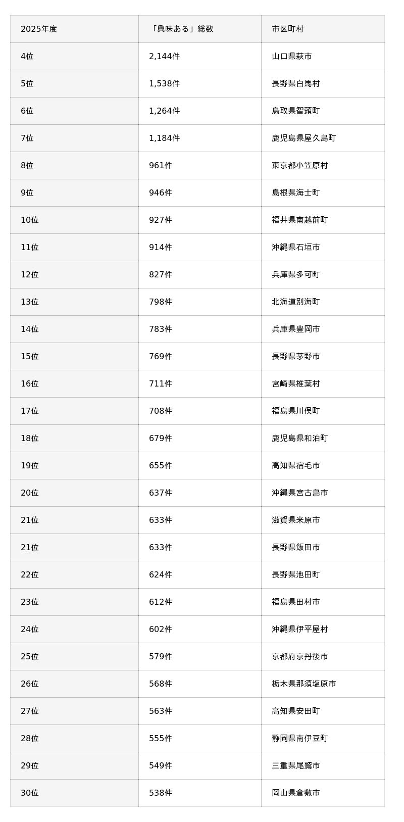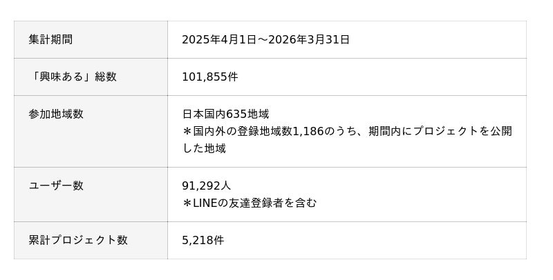 このランキングは、「スマウト」に登録している約9万人のユーザー(2026年3月31日時点)を対象に、2025年度(2025年4月1日〜2026年3月31日)に地域が発信した情報(プロジェクト)に対して、同期間中に押された「興味ある」ボタンの合計数を集計して作成しています。