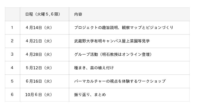 今後の授業では、「畑」「循環」「場づくり」「生き物」の4つのサブテーマに分かれて、それぞれの視点から検討を進めながら、「循環型ガーデン(ちいさないのちの場)」を半年間かけて作り上げていきます。