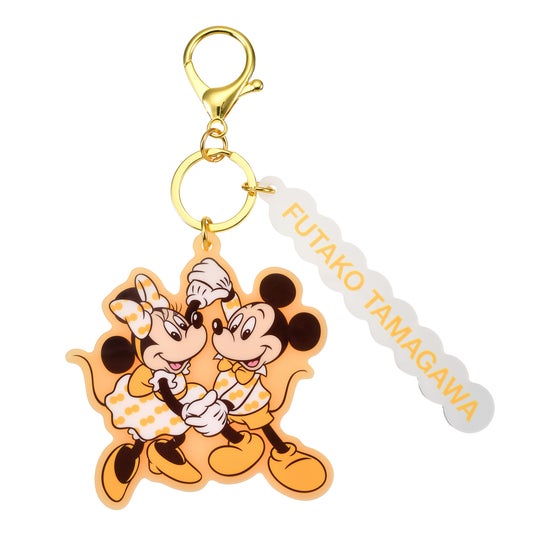 グランドオープンを記念して、全11種類の二子玉川ライズ S.C.店限定アイテムを発売します。ミッキーマウスとミニーマウスが黄色と白を基調としたコスチュームに身を包んだ華やかなアートです。鮮やかなビーズストラップがアクセントのぬいぐるみキーチェーンをはじめ、“FUTAKO TAMAGAWA”の文字がポイントのキーチェーンやトートバッグ、ショッピングバッグなど、限定感のあるアイテムが登場します。