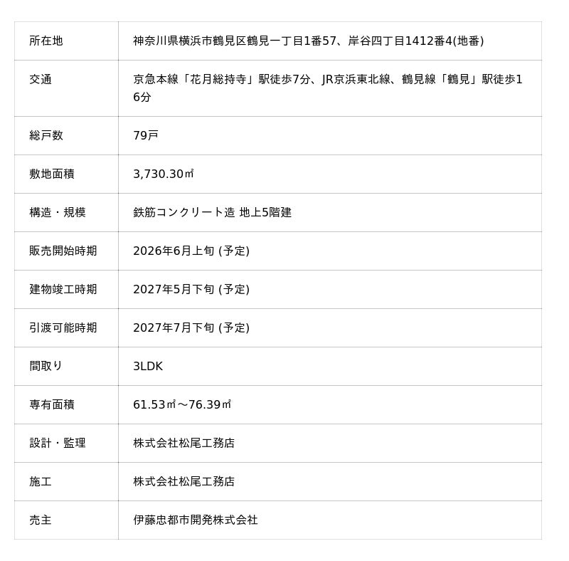 【物件公式HP】https://www.itochu-sumai.com/tsurumi79/