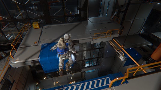 ヒューの宇宙服にスラスターが装備されている。立体的な移動が可能だ。
