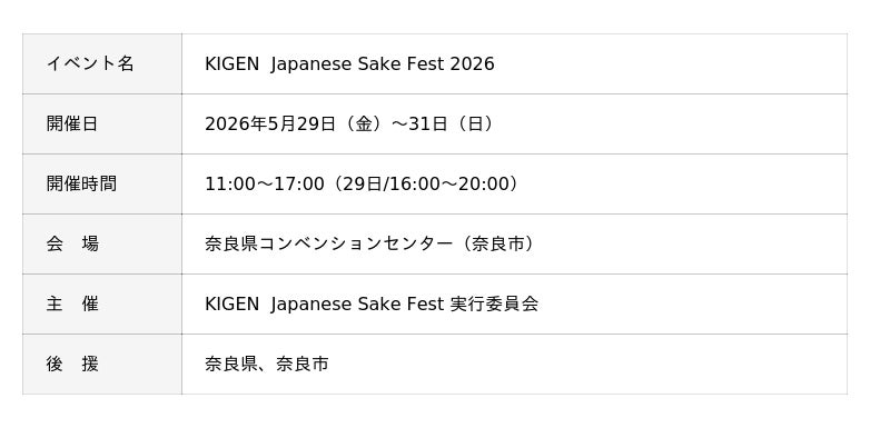 清酒発祥の地・奈良で初開催!! 全国規模(57蔵/3日間)の日本酒の祭典『KIGEN Japanese Sake Fest 2026』チケット販売開始!!