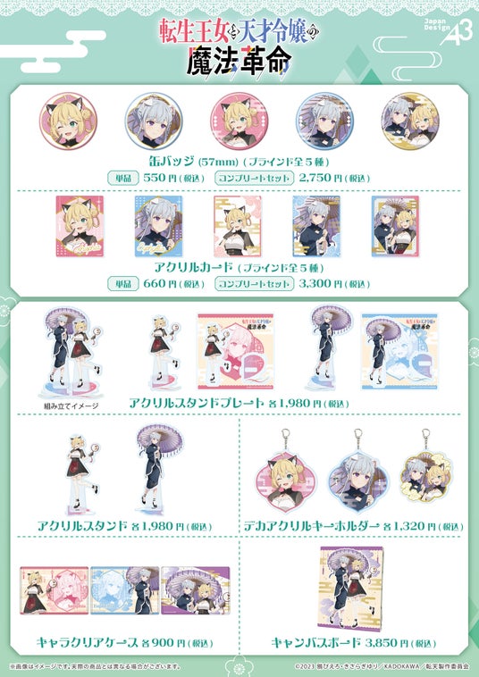 TVアニメ『転生王女と天才令嬢の魔法革命』の新作グッズが登場! 現在、通販サイト「eeo Store online」でお取り扱い中のほか、4月25日(土)からeeo Store 池袋本店で店頭販売もスタートします。