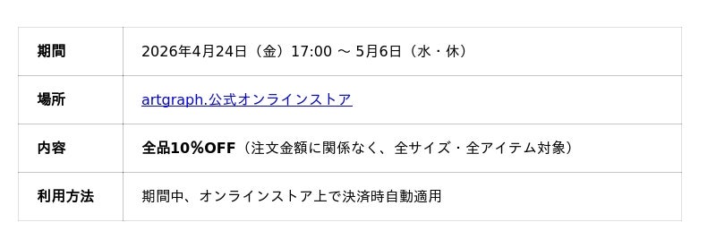 artgraph.の高品質な作品が、皆さまの連休をより豊かにし、初夏の暮らしを彩るきっかけになれば幸いです。