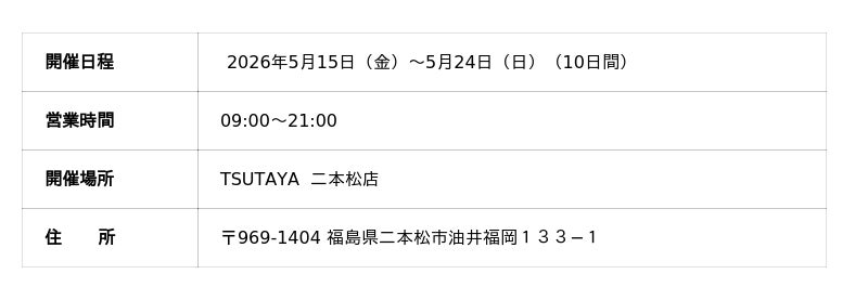 今回は4月29日(水)〜5月10日(日)、5月15日(金)〜5月24日(日)の計2回にわたり開催されますので、期間中ぜひ余裕を持ってお越しください!