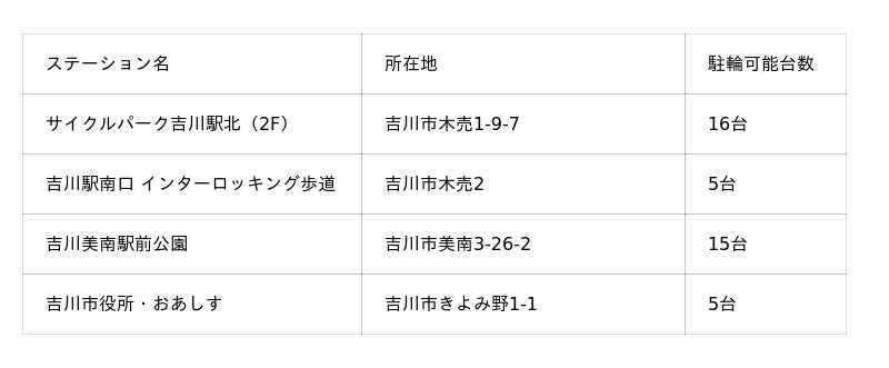 吉川市内のステーション設置場所は、こちらをご確認ください。
