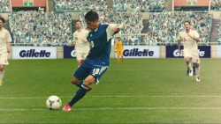 この撮影は昨年、埼玉スタジアムで行われた。敵のプレイヤーからディフェンスに遭うシーンは何度もトライ。タックルを避けながら華麗で素早いドリブルを繰り広げるシーンでは、ボールコントロールをミスして照れ笑いを浮かべる場面も。また、シュートを放つシーンではスタッフが見とれてしまうほどだったという。最後のシェービングのシーンでは、上半身裸になった香川選手の、男らしい一面を垣間見ることができる。