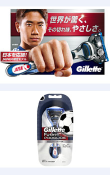 また、ジレットでは本キャンペーンに合わせ、日本限定サッカーモデル『ジレット プログライド サッカージャパンモデル』も発売中。パッケージをサッカー仕様に一新し、グリップ部分には日本をイメージしたカラーリングで「JAPAN」のロゴをあしらった限定品となる。