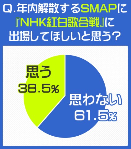 年内解散SMAP「紅白歌合戦」出演の是非 “紅白で聴きたい曲”ランキングも発表!