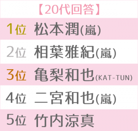 キャスター業と俳優業でも話題の櫻井翔が3位に 飾らない人柄も人気