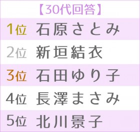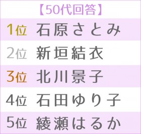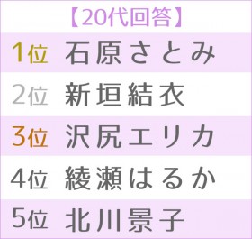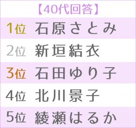 「浴衣が似合う」女性タレントランキング 世代別TOP5