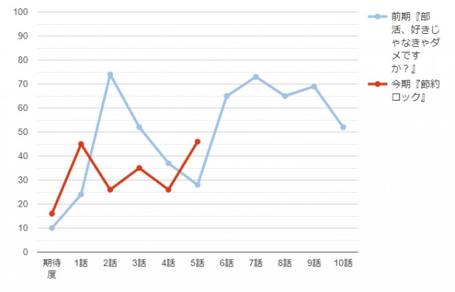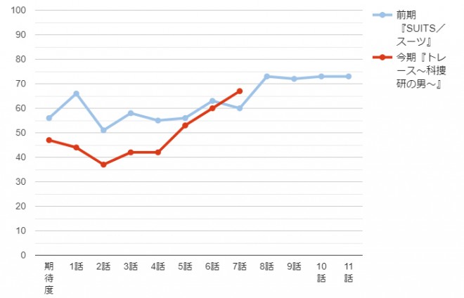 期待度/56、満足度/66 - 51 - 58 - 55 - 56 - 63 - 60 - 73 - 72 - 73 -73(最終回)
