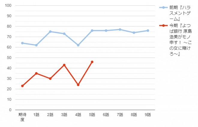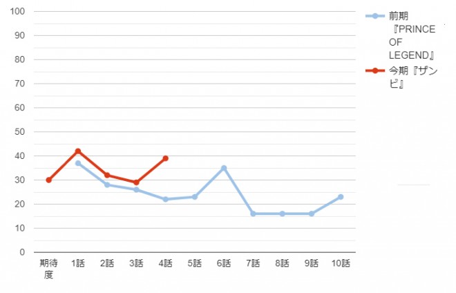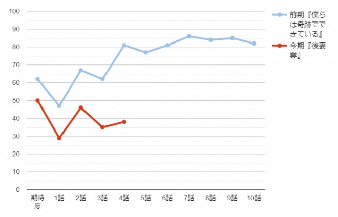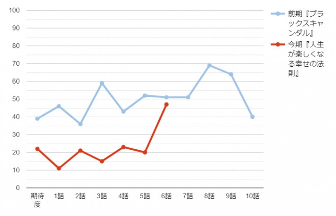 期待度/47、満足度/37 - 29 - 32 - 44 - 36 - 34 - 38 - 48 - 34 - 39(最終回)