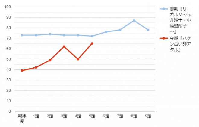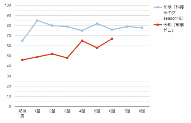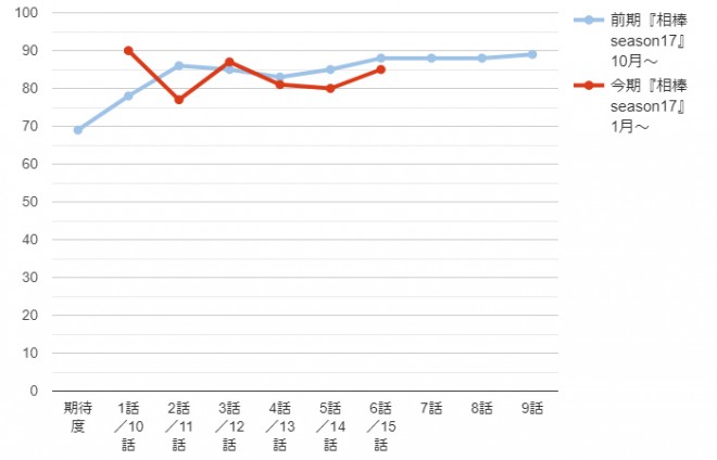 期待度/65、満足度/85 - 80 - 79 - 75 - 82 - 76 - 79 - 78(最終回)