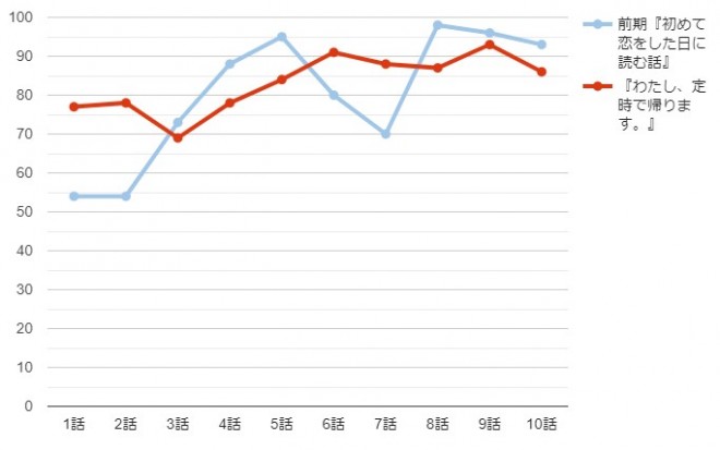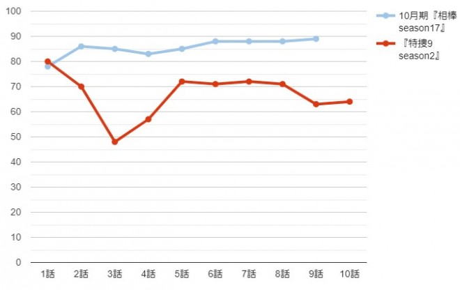 (1話)89 - 88 - 85 - 86 - 83 - 85 - 85 - 84 - 82 - 89(最終回)