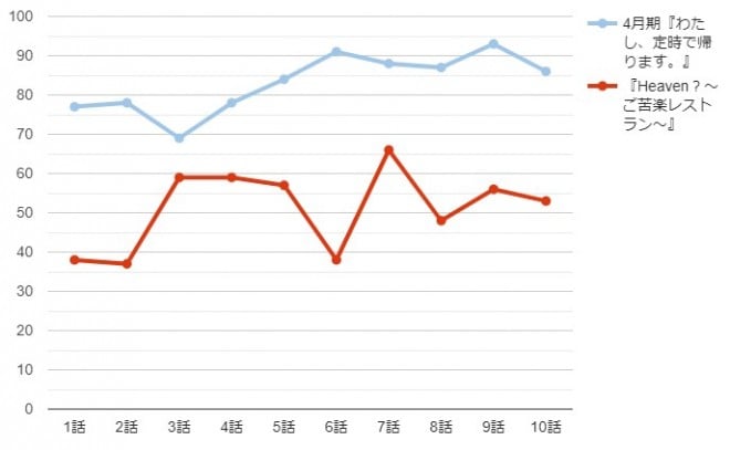 (1話)59 - 64 - 70 - 77 - 75 - 83 - 80 - 90 - 85 - 80 - 90(最終回)