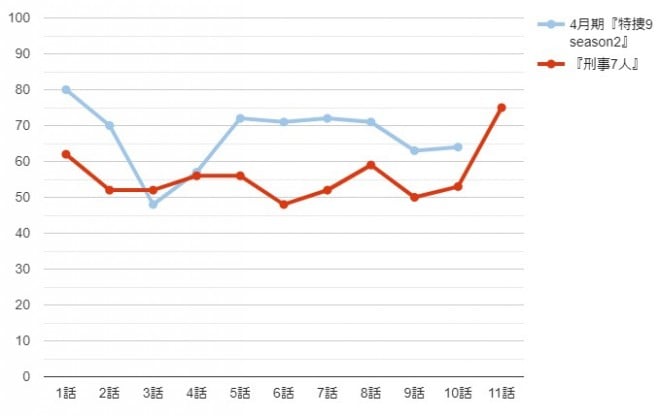 春ドラマ視聴率トップ3はテレ朝が独占『緊急取調室』『特捜9』『科捜研の女』