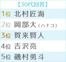 多彩な演技力を見せた賀来に「『半沢直樹』で飛躍したと思う。それまでも知ってはいたが、こんなにいい演技をする役者さんだとは思わなかった。いろいろな役でまったく違う顔になる。素晴らしい役者さん」(大阪府/50代・女性)、「主演ドラマヒットで、引き出しの多い俳優だと思った」(千葉県/50代・男性)と世代別では50代からは1位に。