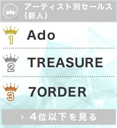 「アーティスト別セールス部門」の「新人ランキング」1位は、デビュー曲「うっせぇわ」で世間の注目の的となったAdoがランクイン。期間中、8.3億円を記録しており、同ランキングでのソロアーティスト1位は史上初となる。なお「うっせぇわ」は「デジタルシングル(単曲)ランキング」で1位。また、「ストリーミングランキング」で4位にランクインした。
