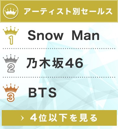 「アーティスト別セールス部門トータルランキング」2位は乃木坂46がランクイン。売上額は49.1億円で、1位と僅差だった。1月27日に発売したシングル「僕は僕を好きになる」が期間中に71.5万枚を売り上げており、同曲は「シングルランキング」2位にランクインした。