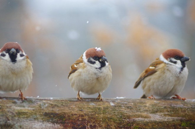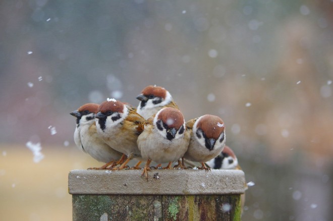 「頭に雪がチョコン!」ふわふわな“雪かむり”スズメに反響、撮影者が見た珍しい風景
