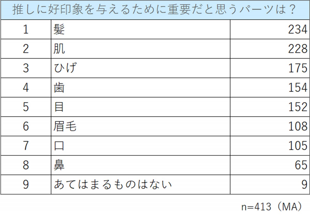 前述の“前向きな行動”には、推し活男子ならではの“推しからも見られている”ことで、“推しに恥じない見た目で会いたい”という前向きな気持ちがあるようだ。それと同時に、“見た目に対する悩み”の声も多数あがった。では推し活男子たちは、見た目についてどんな悩みを持っているのだろうか? ひげが濃いのが気になっている。 | 10代 |