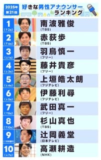第21回 好きな男性アナウンサーランキング