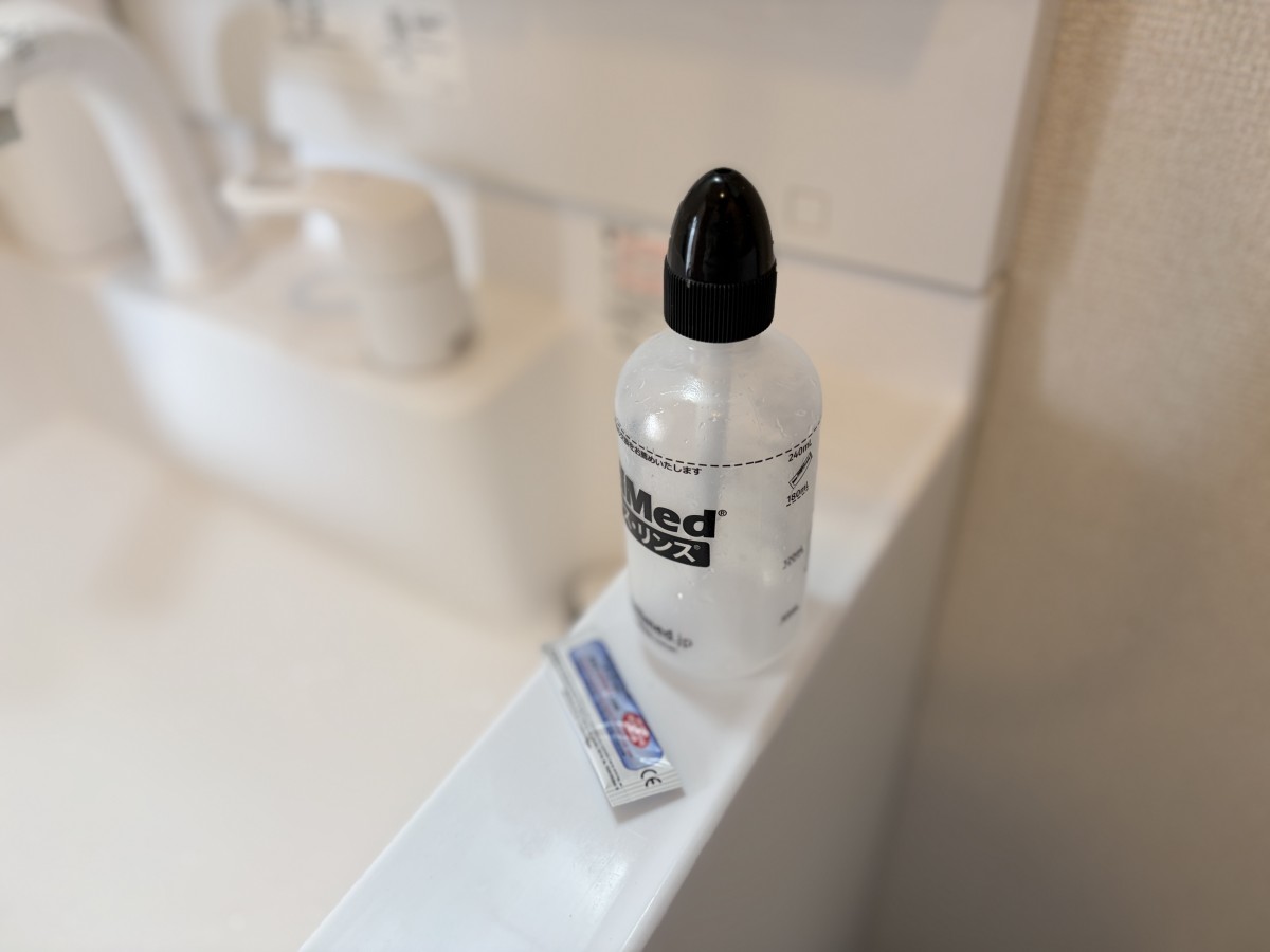 ボトルと洗浄剤がセットになっている、鼻うがい初心者向けのスターターセット。